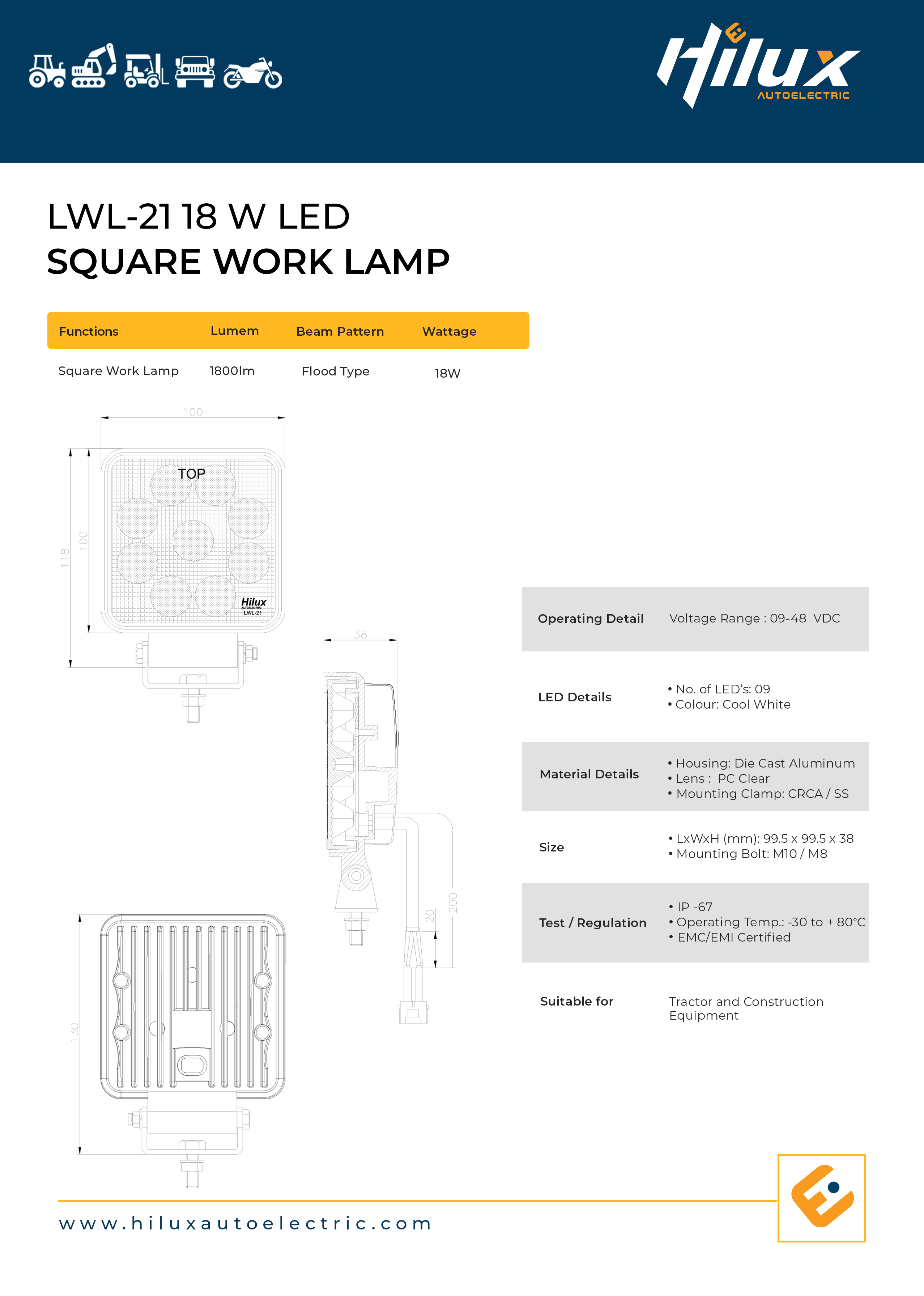 • Ideal for tractor night field operations