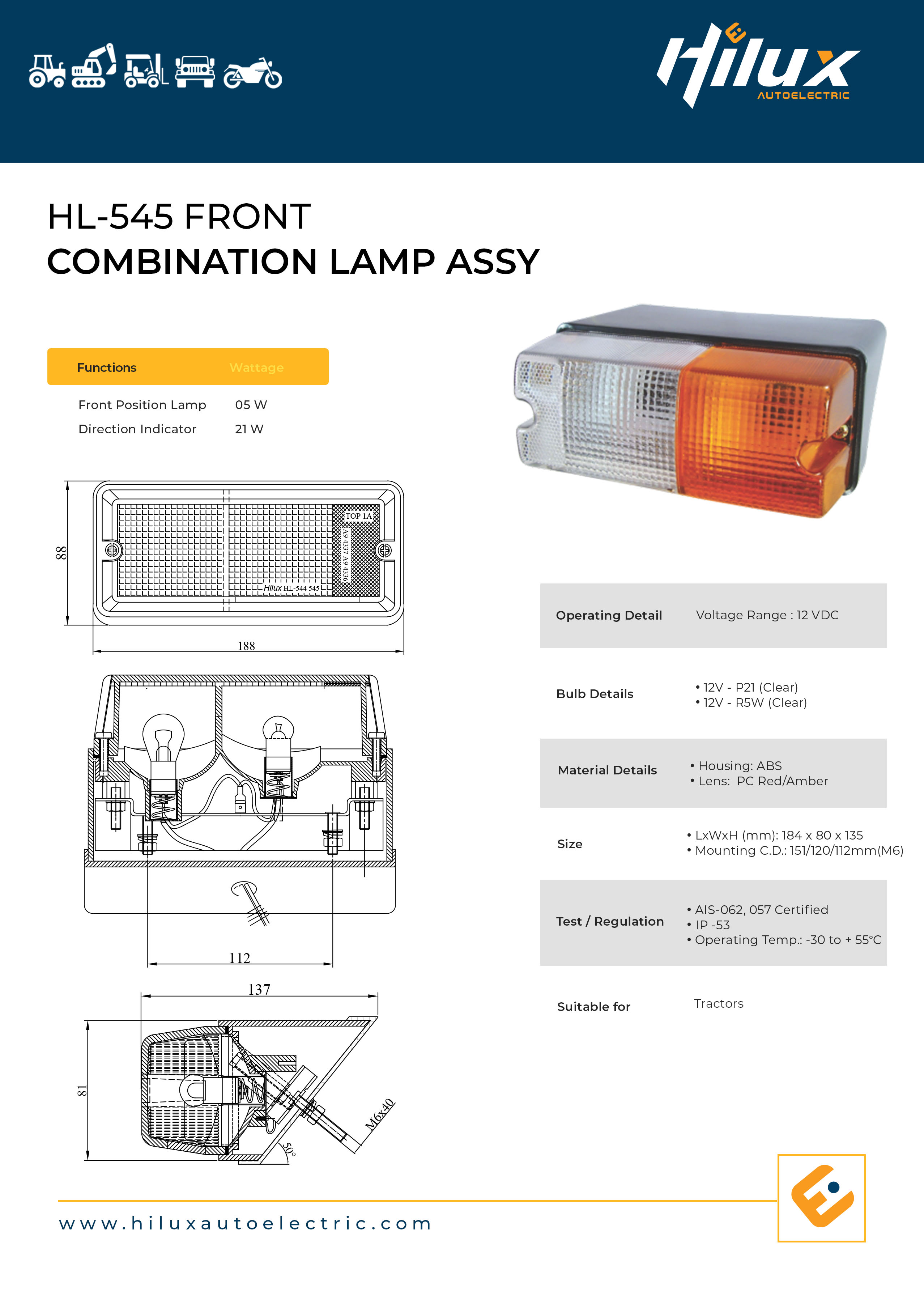 12V - 21W (Indicator) | 12V - 5W (Parking)