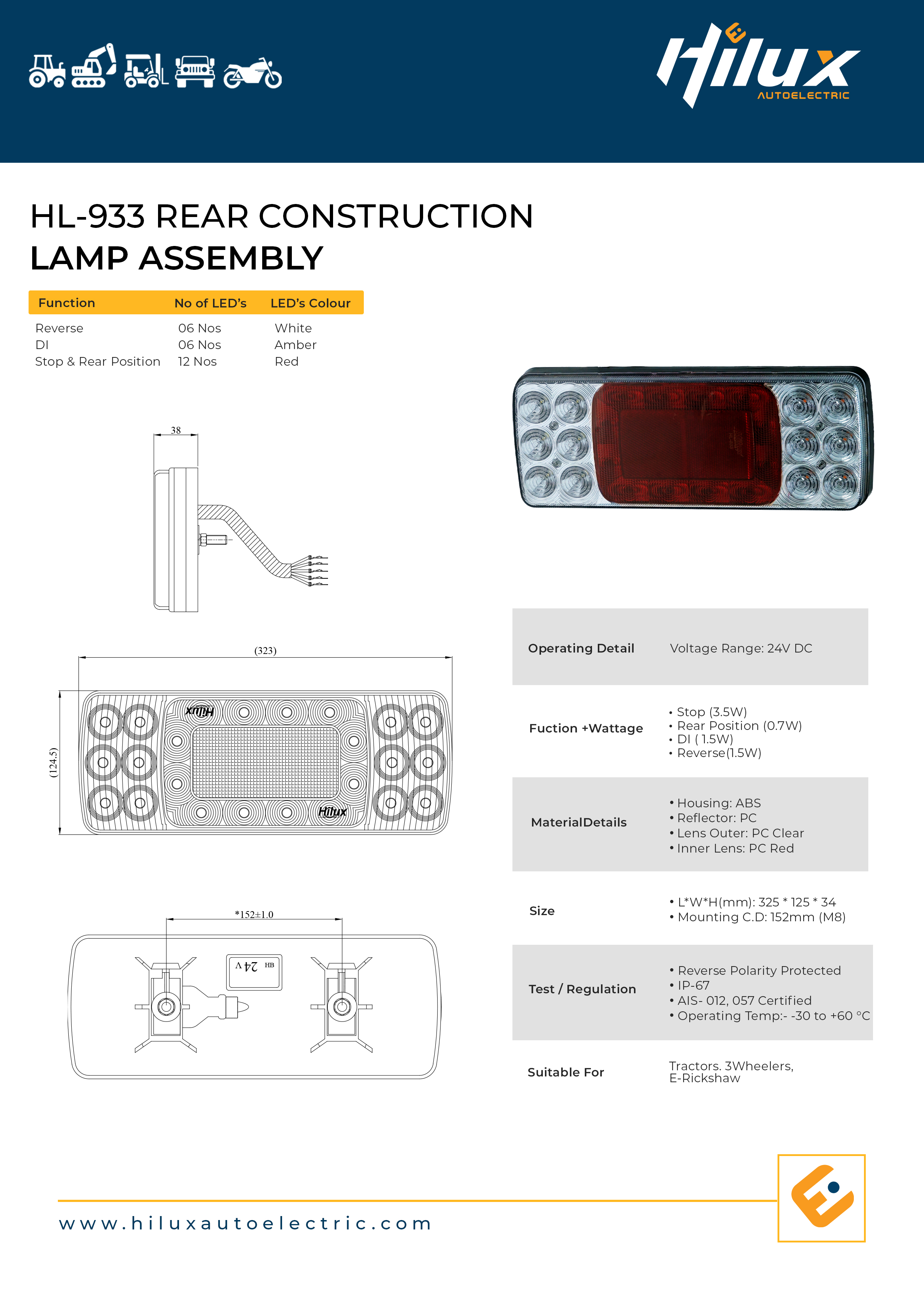 • Combines tail, brake & indicator functions